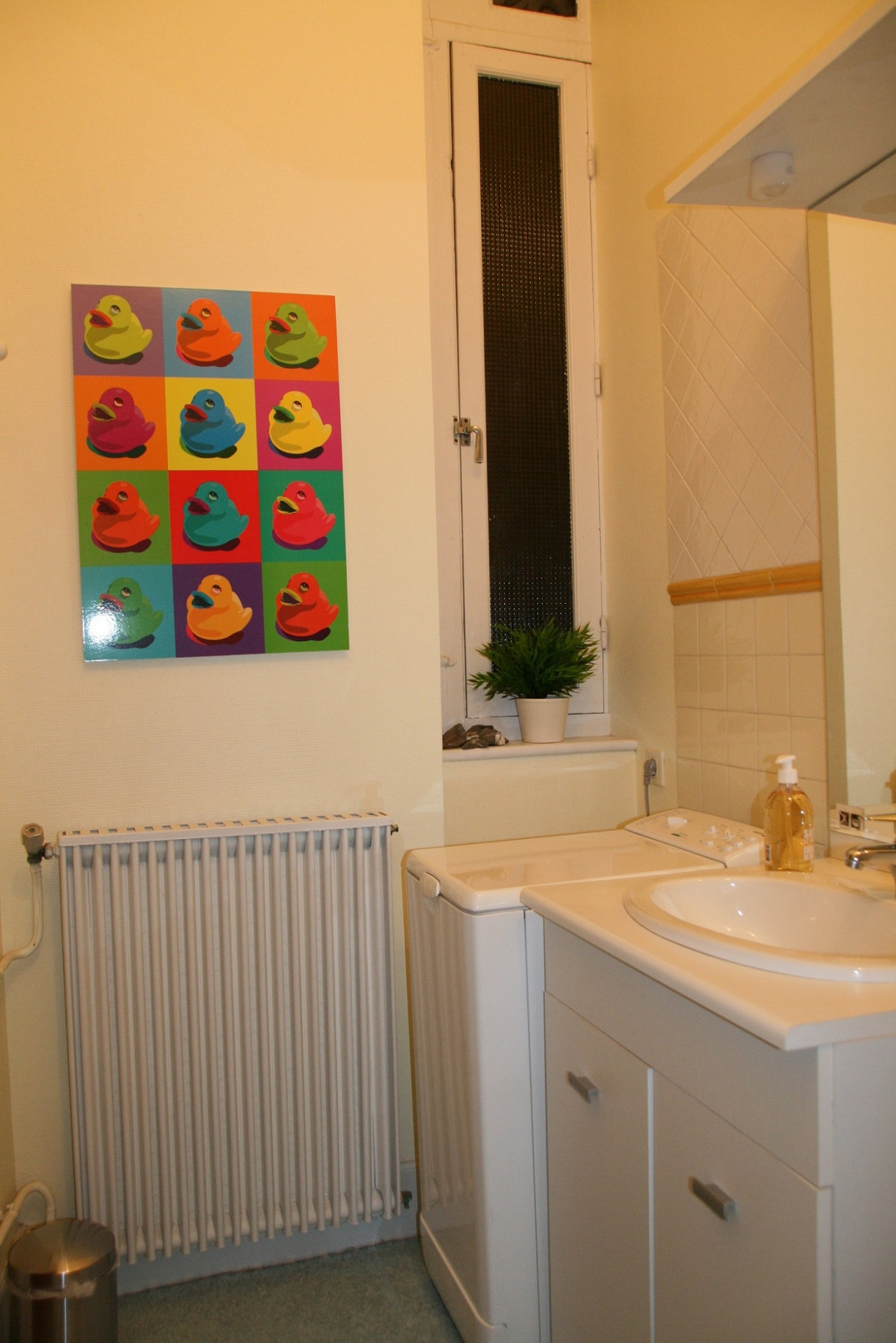 La salle de bain est fonctionnelle avec une baignoire et un meuble lavabo