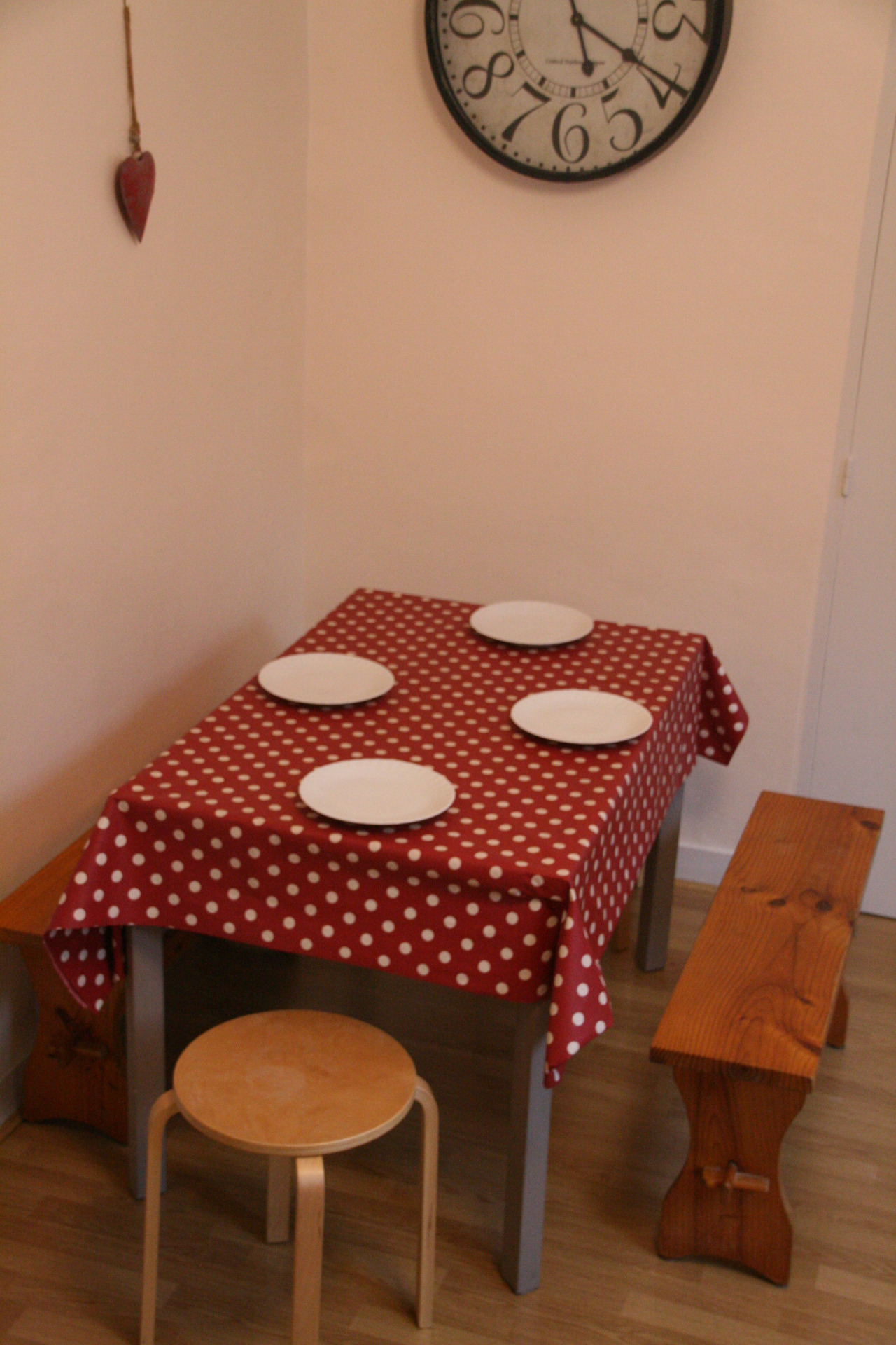 Le coin salle-à-manger avec sa table qui peut passer rapidement de 4 couverts à 8 couverts